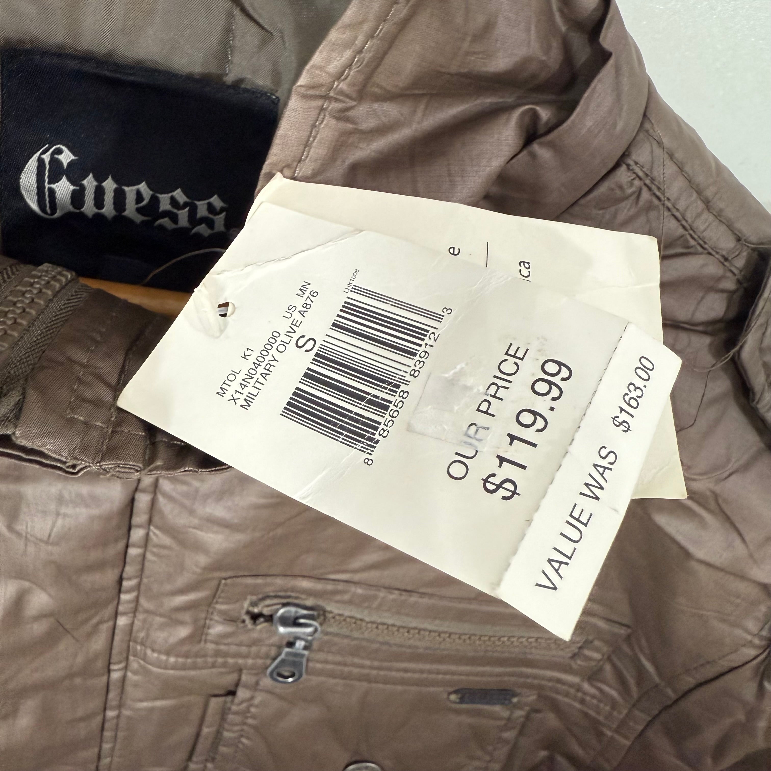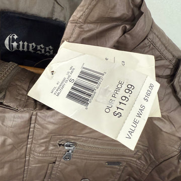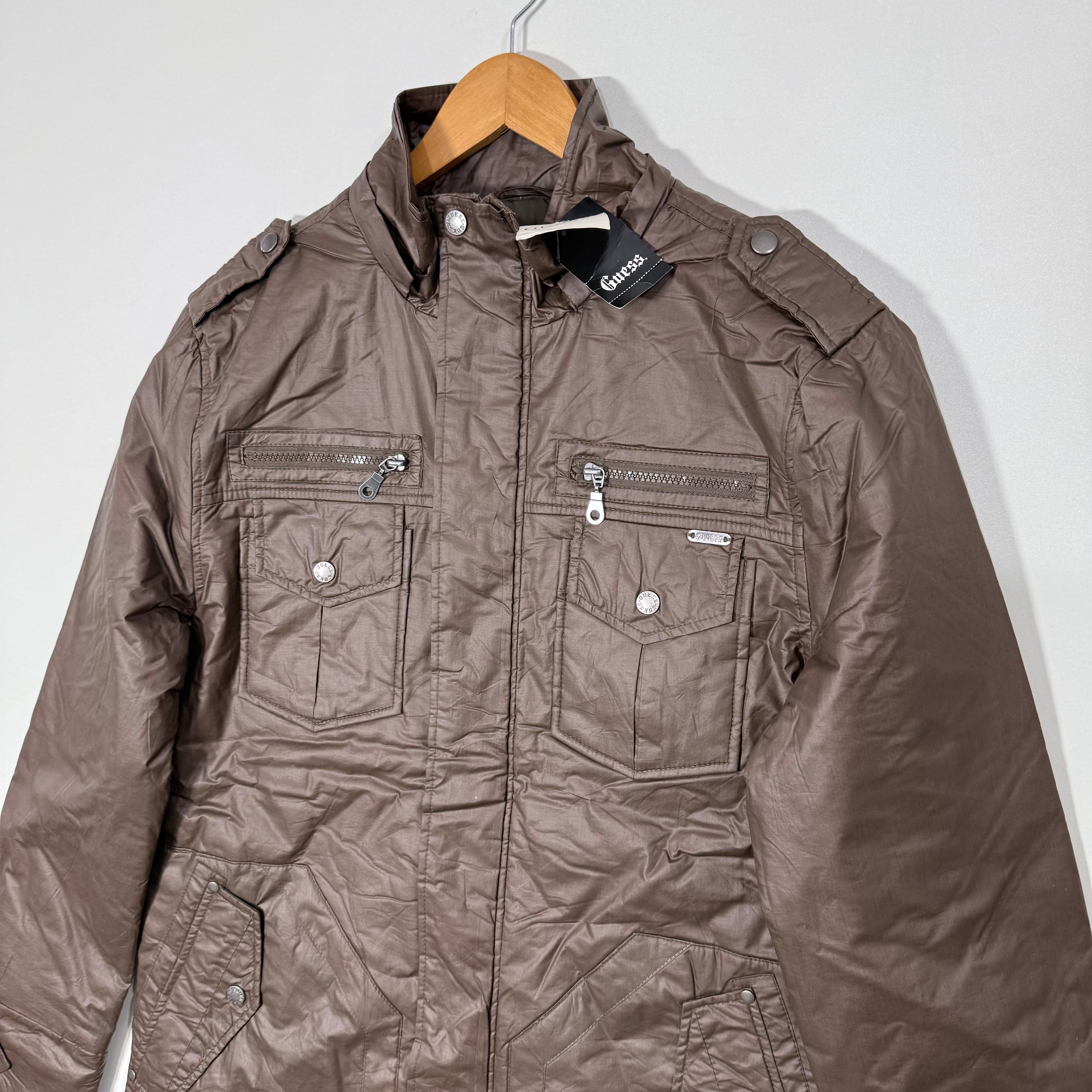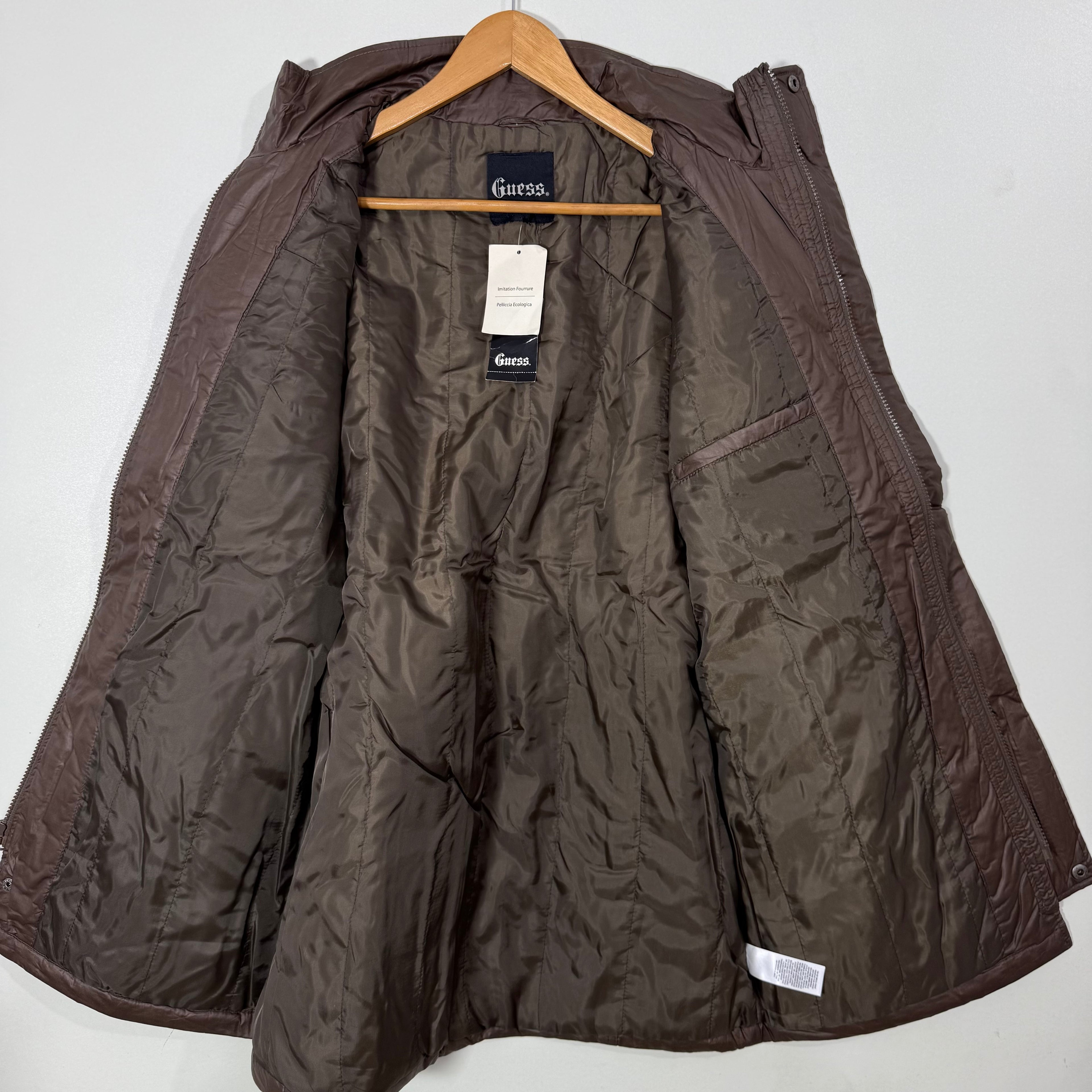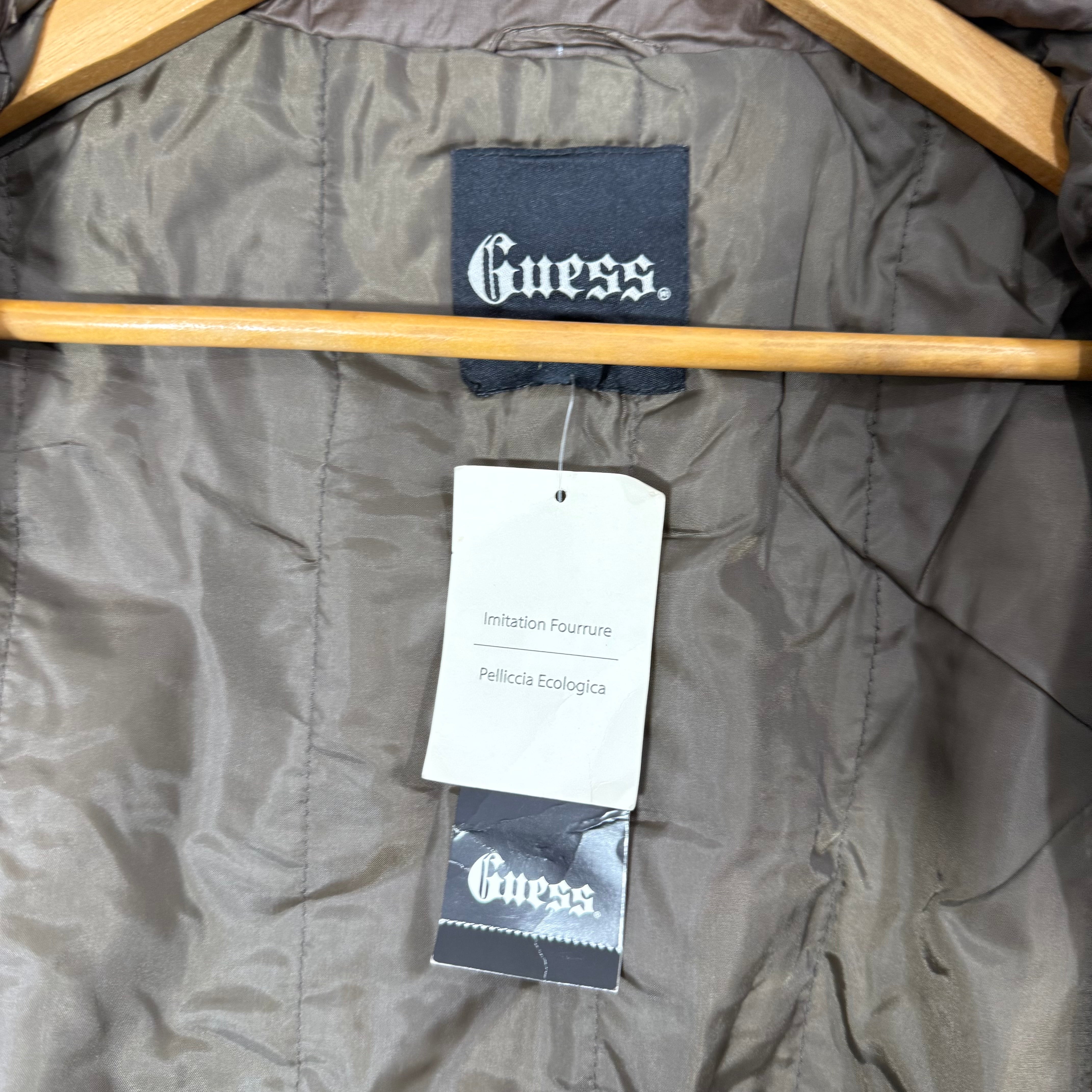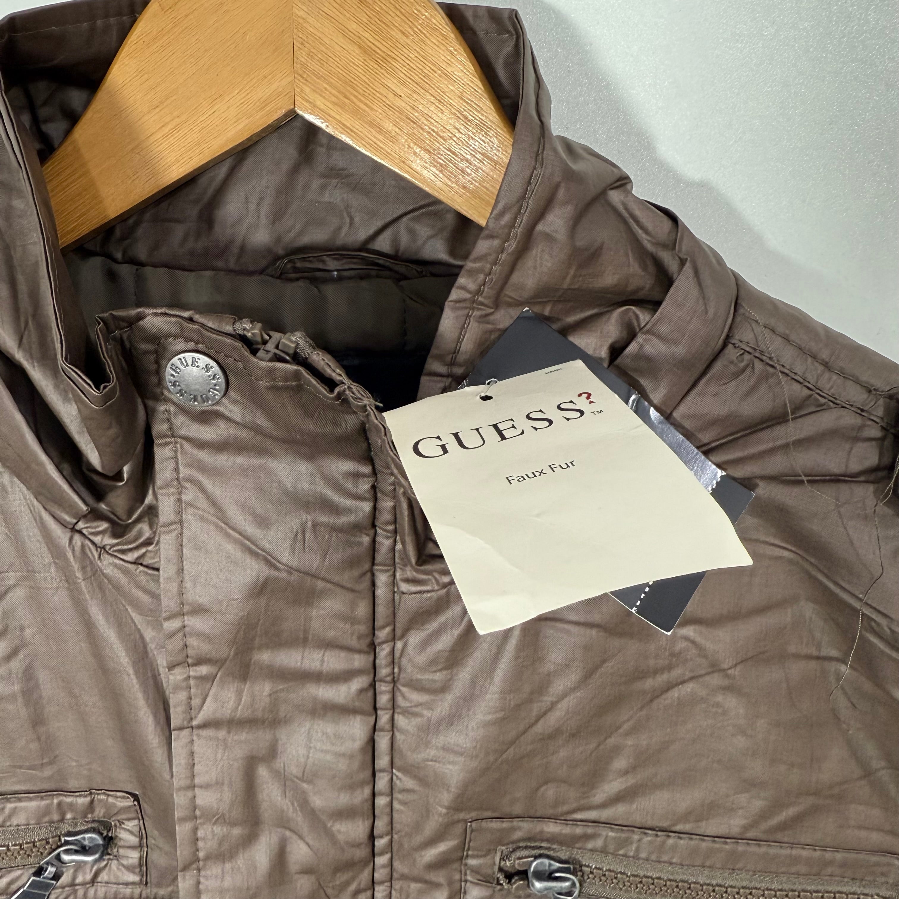 GUESS FOUR POCKETS ACRYLIC PUFFER JACKET BRAND NEW BROWN COLOUR